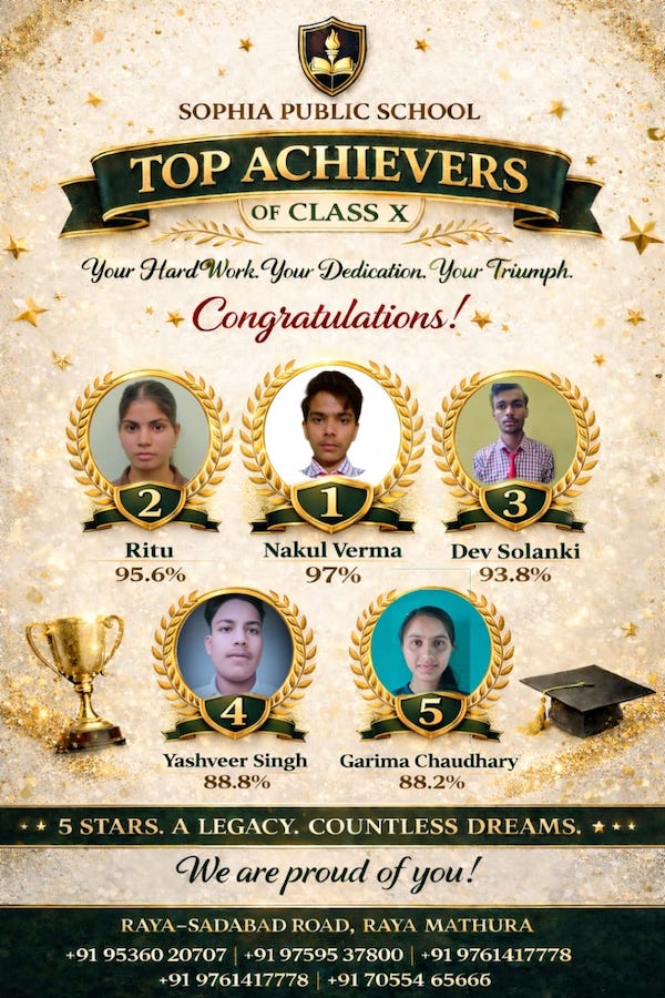 Sophia Public School Raya, Mathura is a co-educational English & Hindi Medium School recognised and affiliated by Govt and situated at Sadabad Road, Raya Mathura UP.